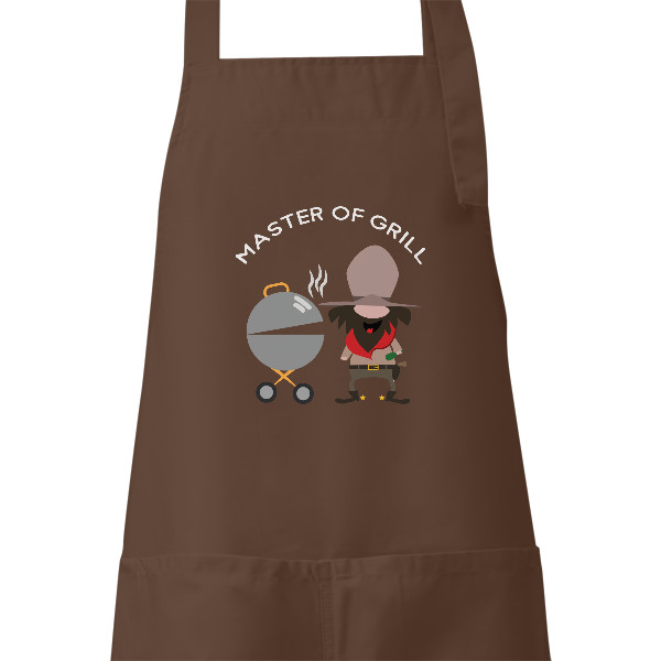 Dlouhá zástěra z kvalitního pevného materiálu. V přední části je velká dvoudílná kapsa na odložení nezbytností, která se určitě při vaření hodí. Za krkem je nastavitelný popruh se sponou a vzadu zavazování.